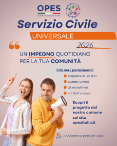 👉 Scopri tutti i dettagli tecnici sui progetti OPES: www.opesitalia.it/servizio-civile-bando-2026/